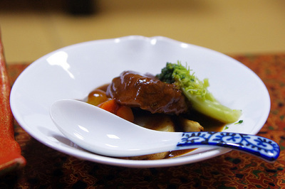 最後に出てきたのは、軟らかい牛肉にデミグラスソースがかけてあります。